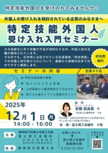 2025.10.30 商業観光課1201セミナーチラシ富士商工会議所 労働保険事務組合(中小企業相談所 経営相談課内) 〒417-0057 静岡県富士市瓜島町82番地 TEL 0545-52-0995 FAX 0545-52-9796