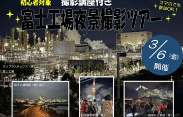 工場夜景撮影ツアーのご案内 富士市主催で下記の通り「工場夜景撮影ツアー」が開催されます。 工場夜景の撮影に関心のある方は是非ご参加ください。 参加をご希望の方は富士市HPに記載されている募集要項をご確認いただき、お早めに…