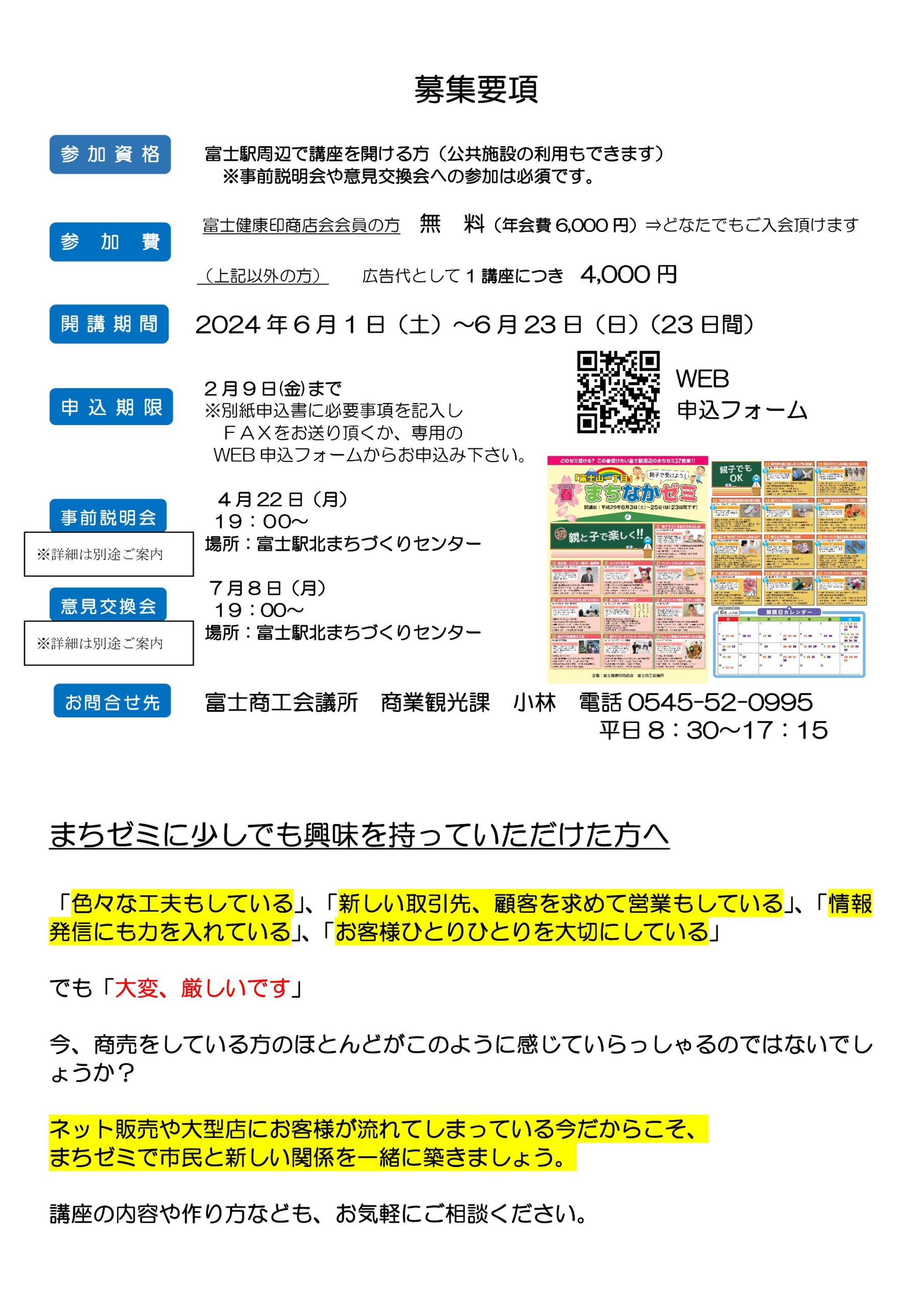 2024.01.09 商業観光課Microsoft Word – まちなかゼミ案内(簡易版)-04富士商工会議所 縁むすびん婚活スタッフ〒417-0057 静岡県富士市瓜島町82番地 TEL 0545-52-0995 FAX 0545-52-9796